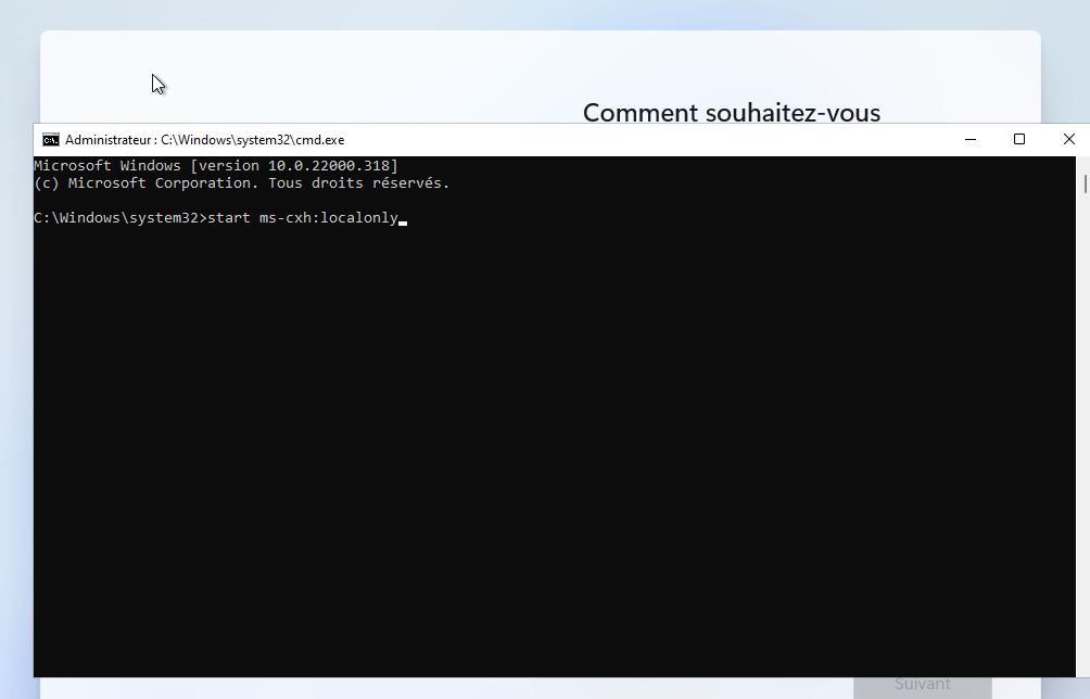En effet, lorsque tu es amené à finaliser l’installation de Windows, il est possible d’ouvrir un terminal. En tapant une simple ligne de commande, on peut forcer la création d’un utilisateur local.